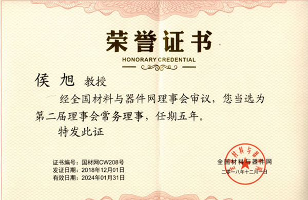 January, 2019 Congratulations to Professor Hou on being selected as the Standing Director of the Second Council of the National Materials and Devices Network!