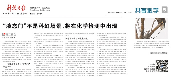 March, 2019 Our recent work on liquid gating detection was reported by "Science and Technology Daily".See details: Click here.