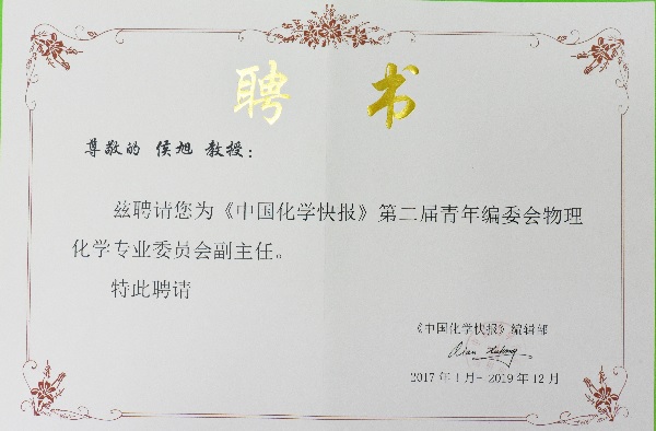 January, 2017 Congratulations to Professor Hou on being engaged as Vice Director in Youth Editorial Committee (Physical Chemistry) of Chinese Chemical Letters!