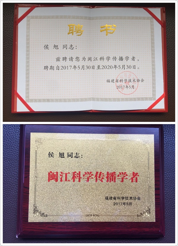 June, 2017 Congratulations to Professor Hou on being engaged as "Minjiang Scholar for Popular Science"!