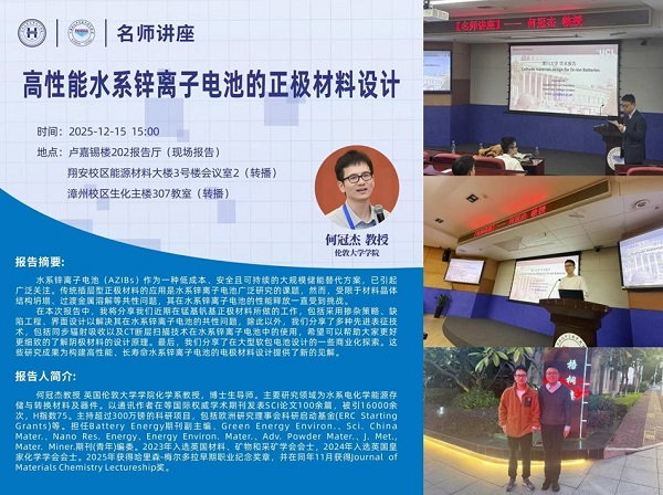 December, 2025 Professor Xu Hou hosted Professor Guanjie He from University College London (UCL) for a seminar on high-performance aqueous zinc-ion batteries. The academic exchange highlighted frontier research results and successfully promoted opportunities for future cooperation.
